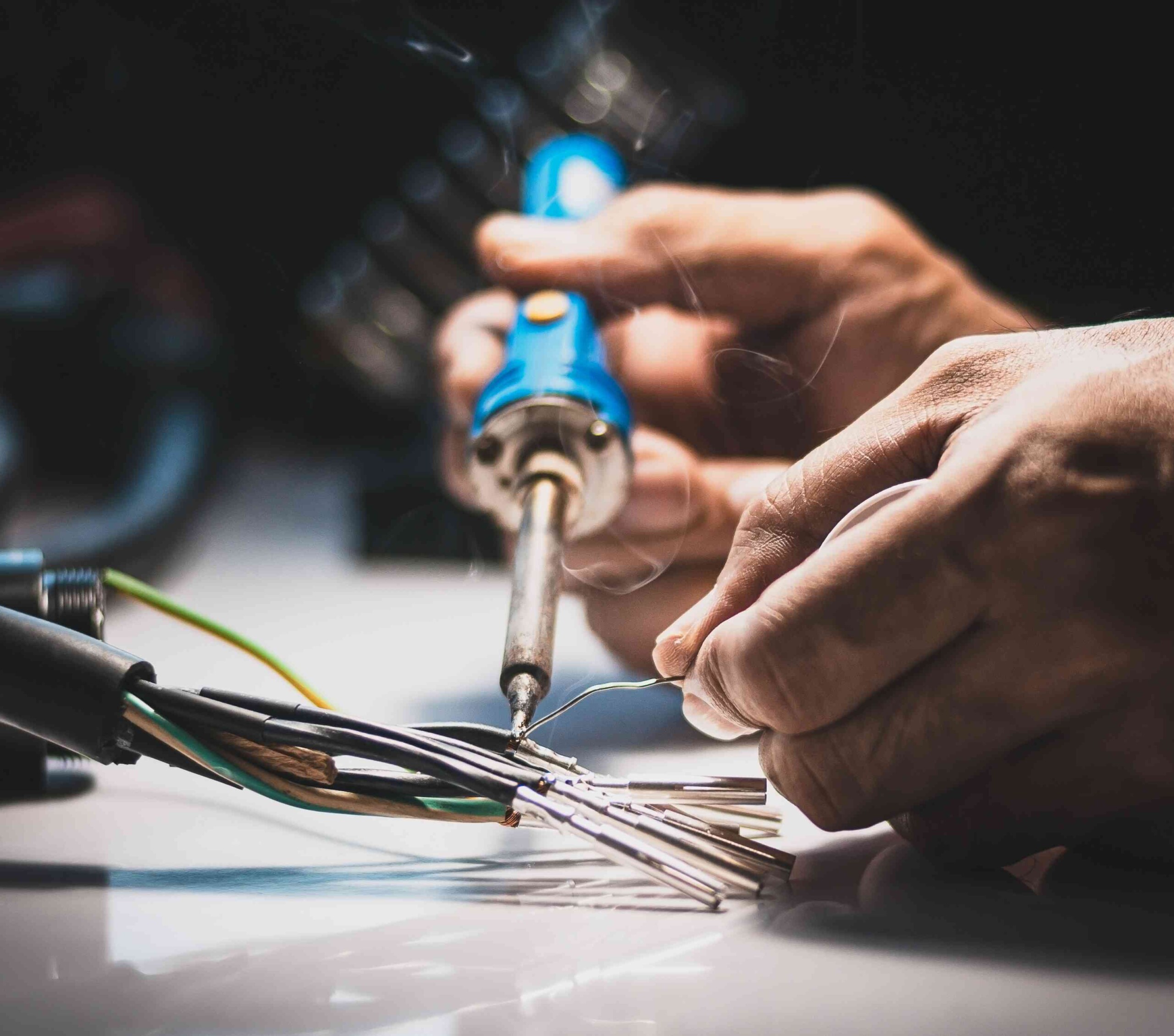 - Lötausstattung: Lötstationen mit Heißluft, Lötkolben und Zubehör wie „dritte Hände" und Lötabsaugungen.