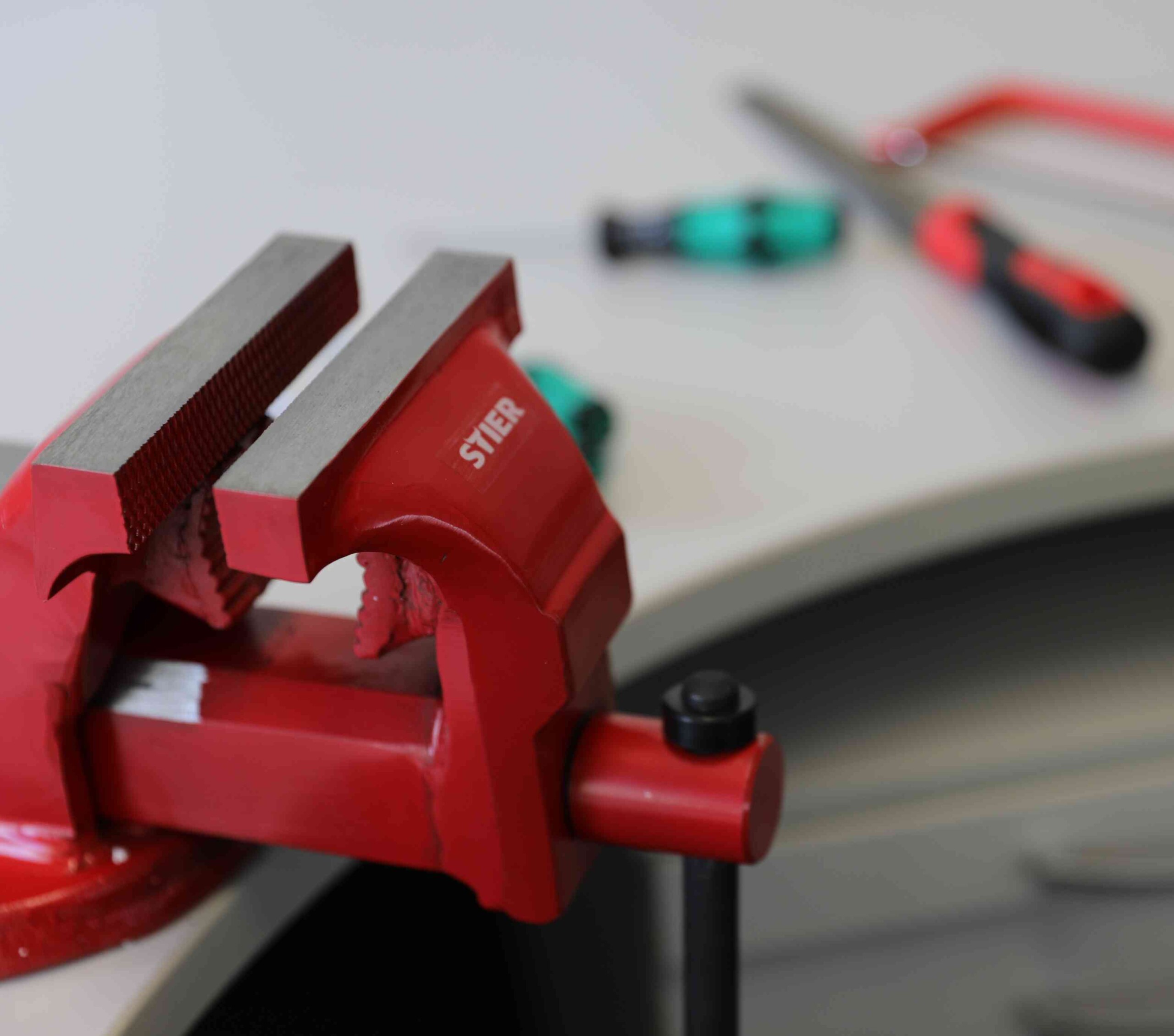 - Mess- und Markierwerkzeuge: Messschieber, Anreißnadeln und Schraubstöcke.
