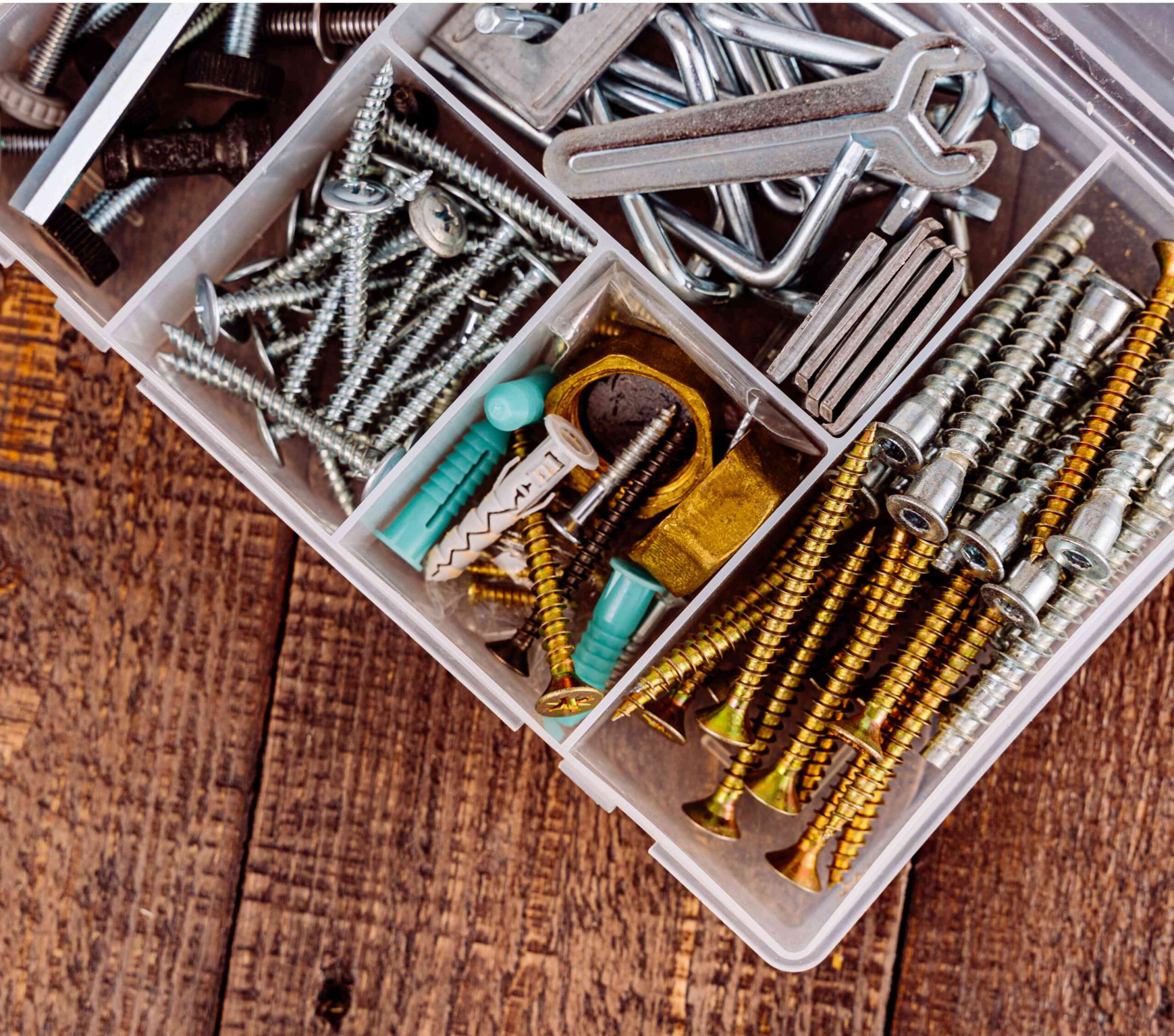 - Schrauben, Muttern, Unterlegscheiben und Haken-Sets.